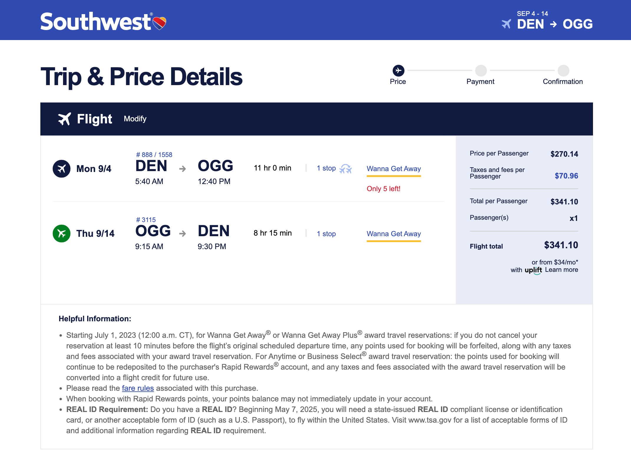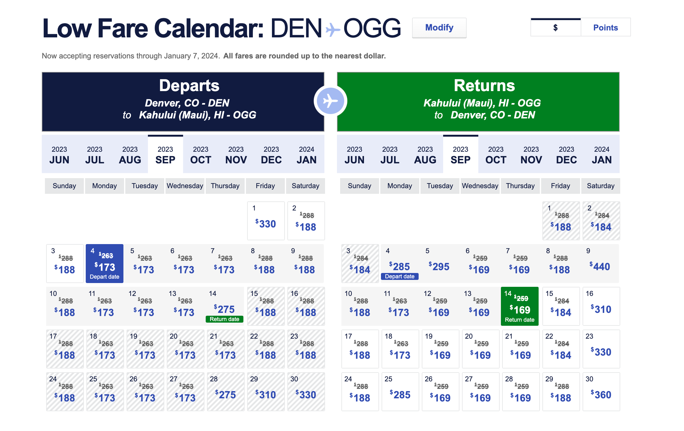 To find this deal, head to Southwest's website and browse its low-fare calendar. You'll notice that one of the cheapest trip options is from Sept. 4 to Sept. 14.
