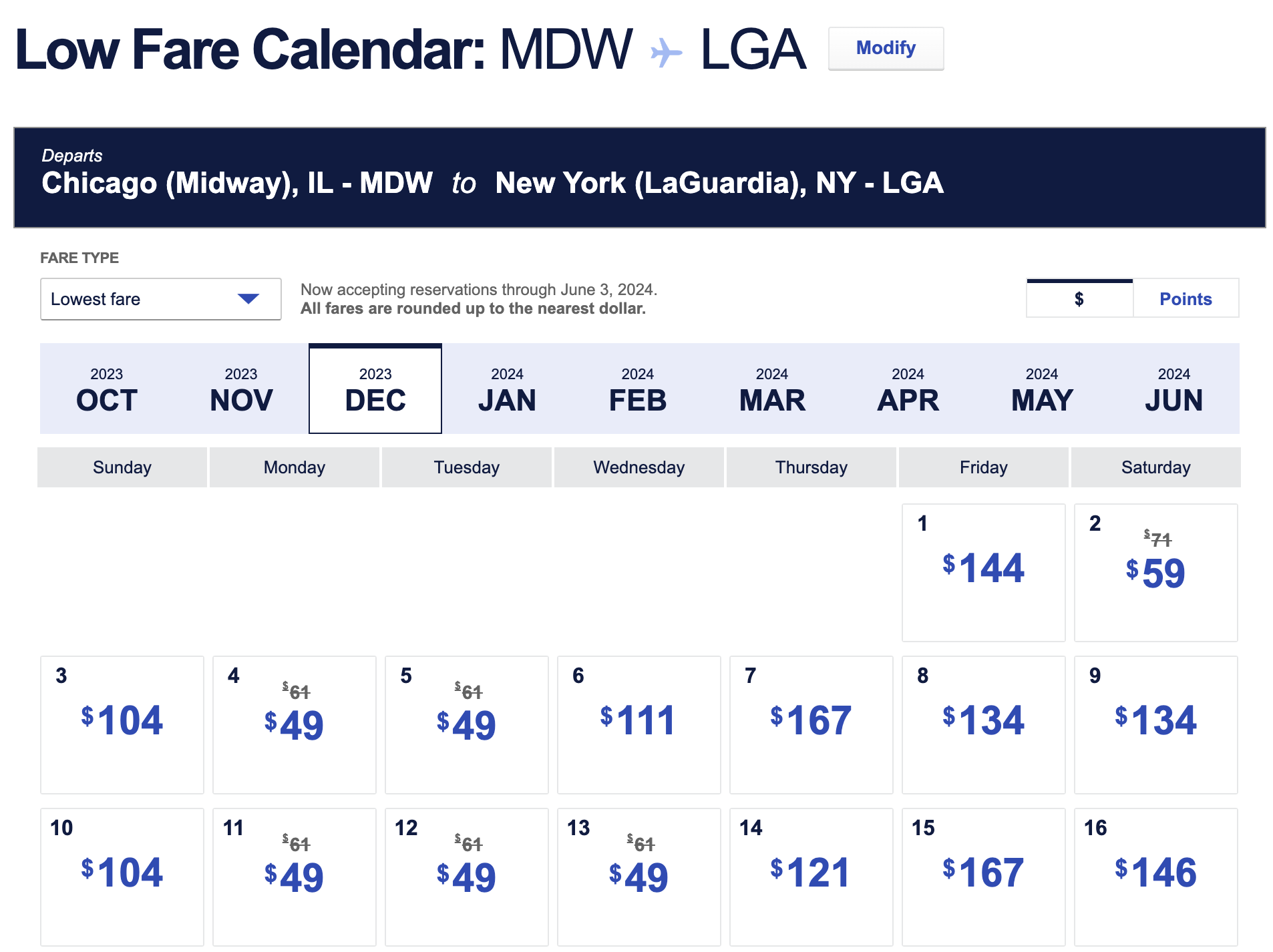 Because this deal extends across the Southwest network, use the airline's Low Fare Calendar to search your desired route, where you'll notice if/when the sale fares are available.