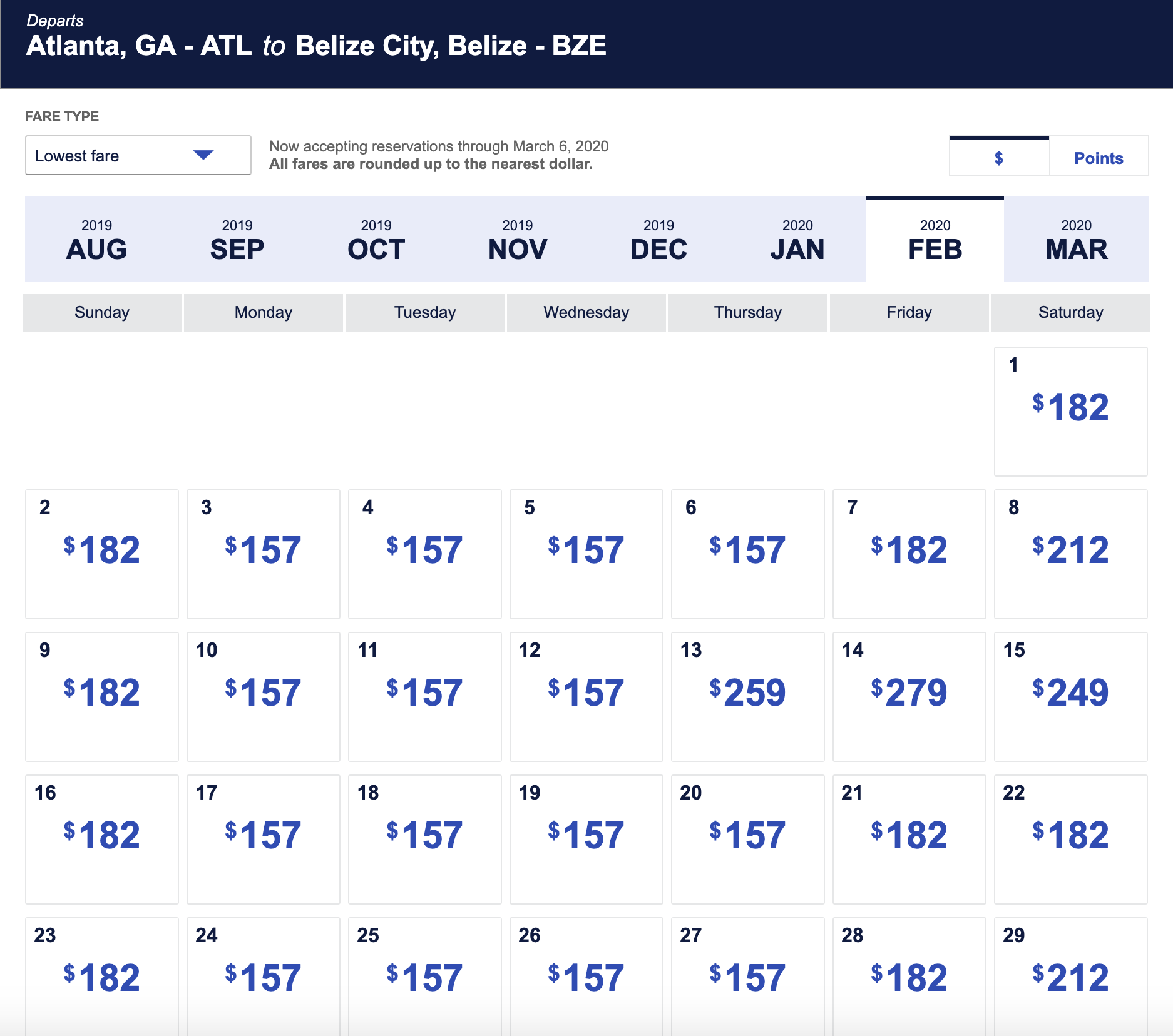 Atlanta (ATL) to Belize City (BZE) for $157 one-way: