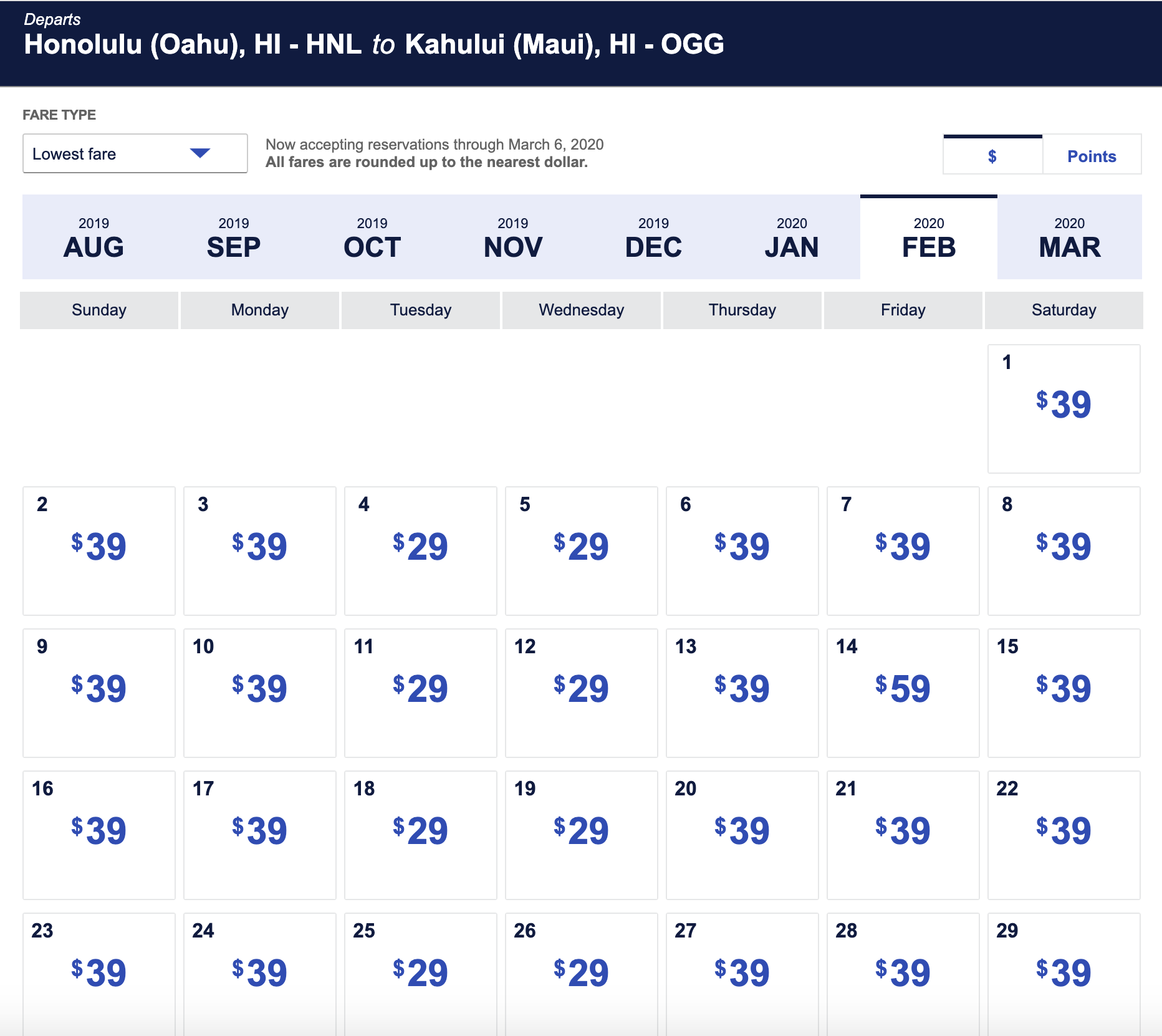 Honolulu (HNL) to Maui (OGG) for $29 one-way:
