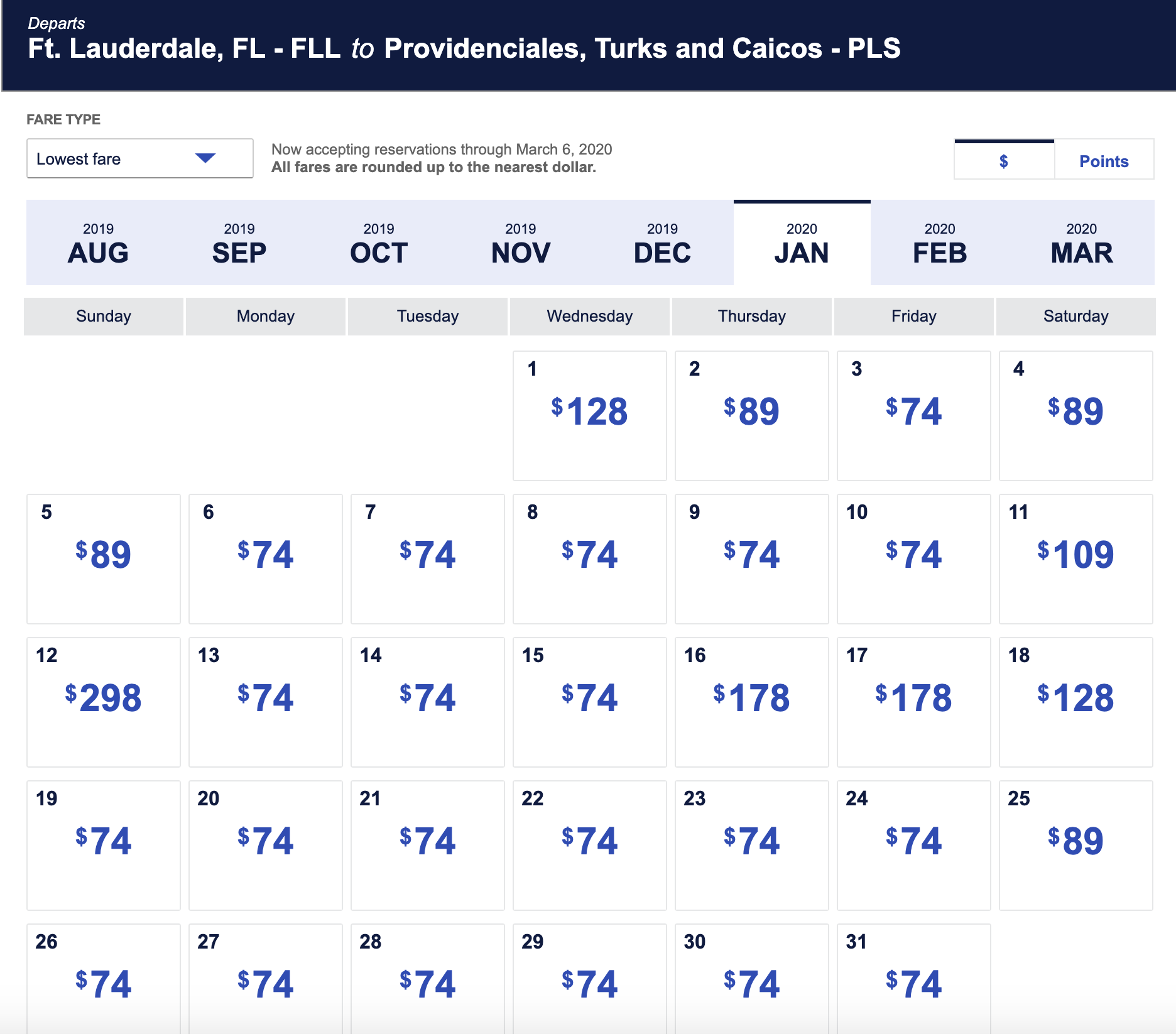 Travel Dates: Domestic travel valid 9/10/19 – 3/4/20; fights to/from Puerto Rico valid 9/10/19 – 12/5/19 and 1/13/20-3/5/20; International travel valid 9/10/19 – 12/5/19 and 1/13/20-3/5/20