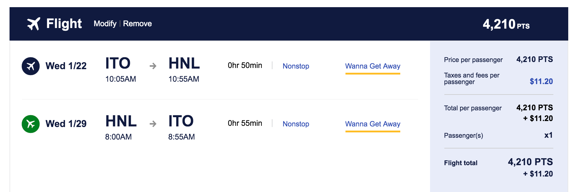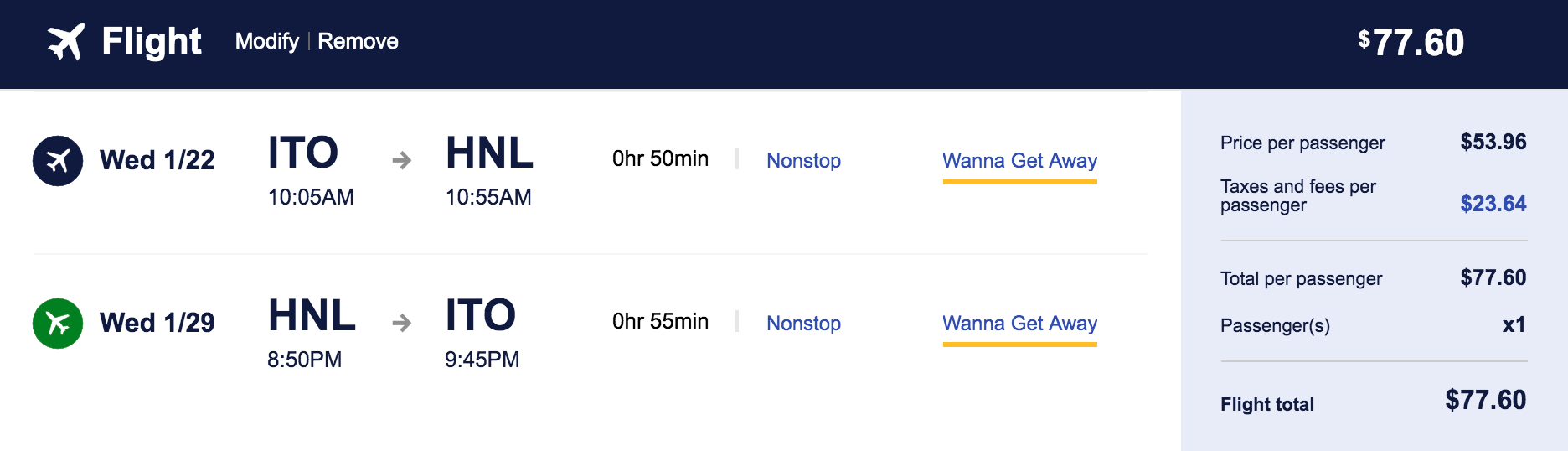 Hilo (ITO) to Honolulu (HNL) for $39 one-way or $78 round-trip nonstop: