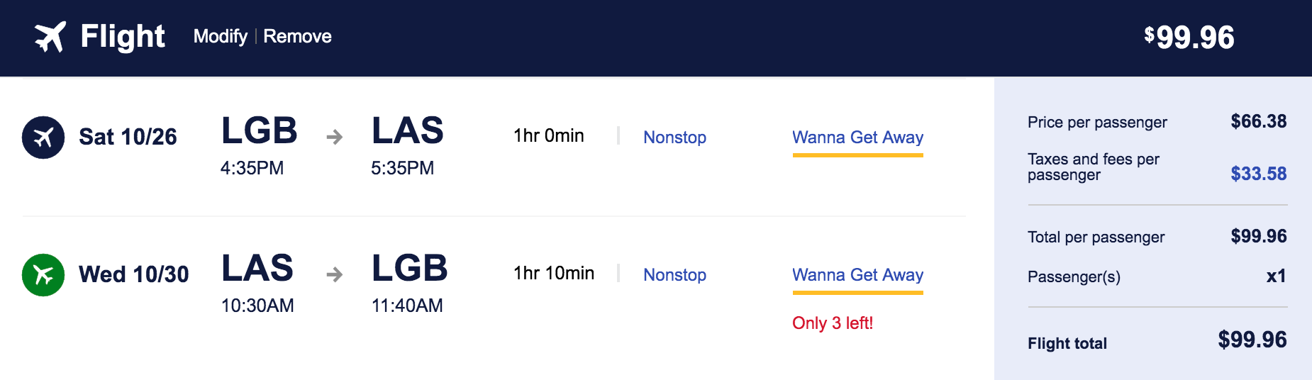 Long Beach (LGB) to Las Vegas (LAS) for $55 one-way or $100 round-trip nonstop: