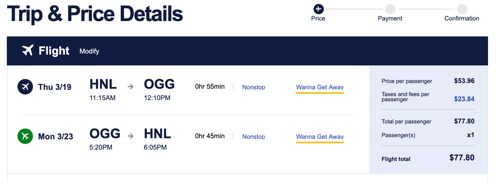 Honolulu (HNL) to Maui (OGG) for $78 round-trip nonstop:
