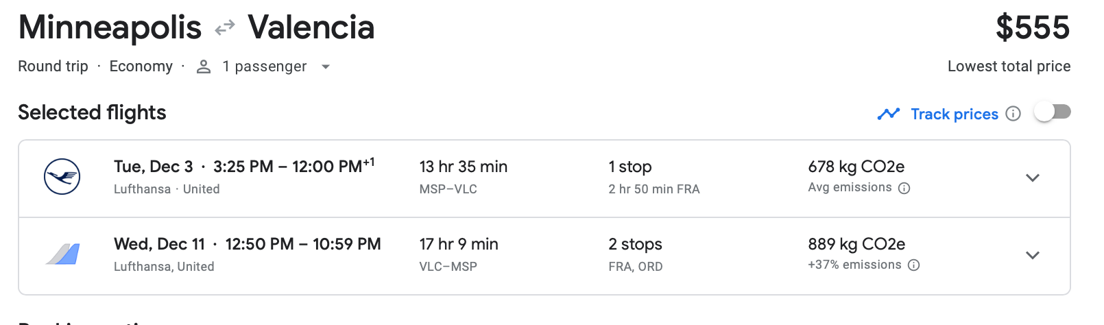 Here are some of the best bargains we found out of the Twin Cities. Lufthansa has round-trip tickets from Minneapolis-St. Paul International Airport (MSP) to VLC in early December for $555.