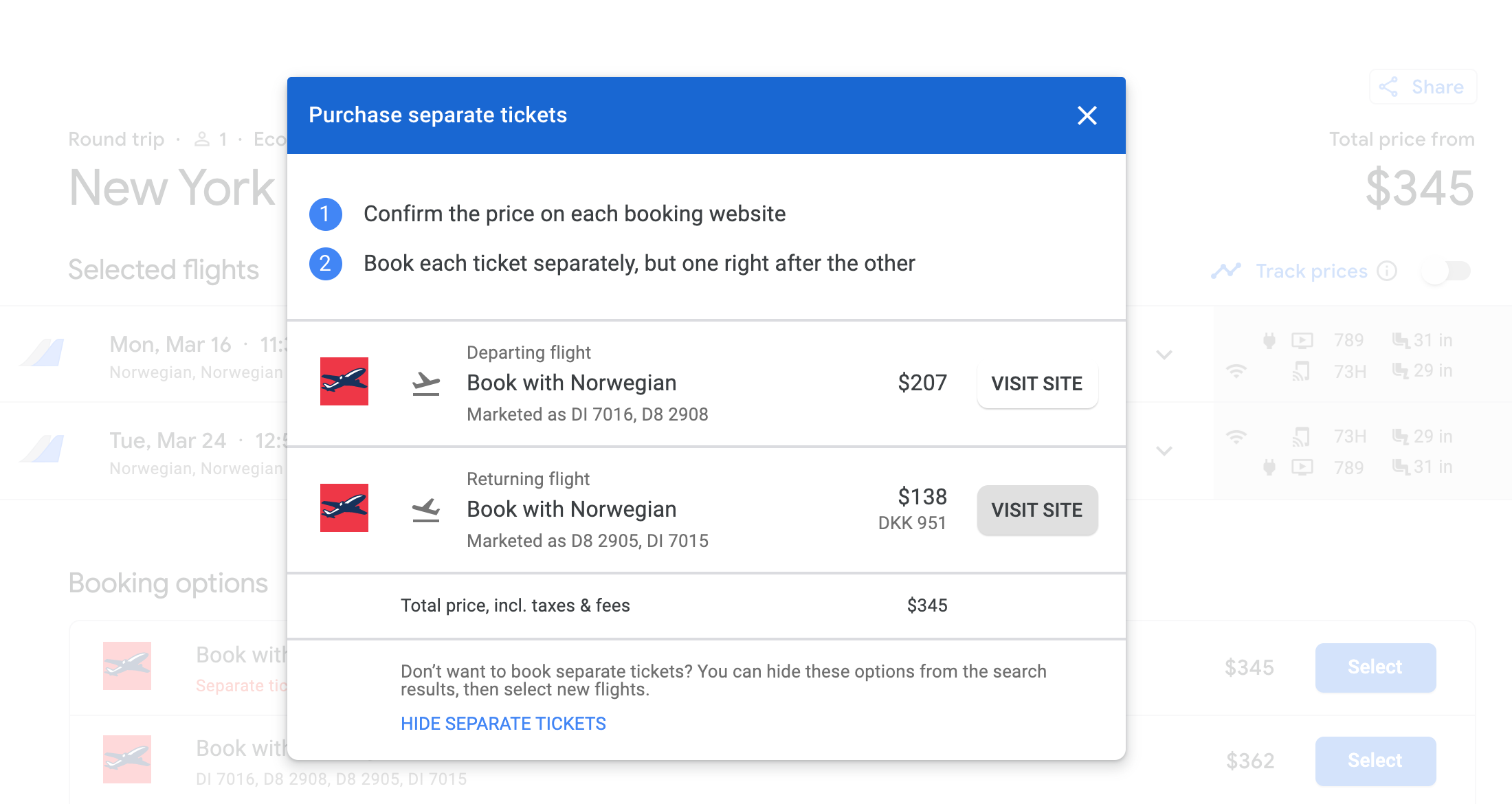 To find a deal, head to Google Flights and enter your origin and destination cities. Scroll through the calendar function to find dates and prices that work for you. Finally, click through to book directly with the airline or an OTA like Orbitz or Expedia.