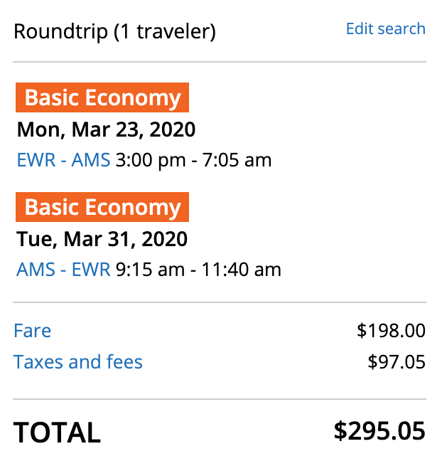 New York/Newark (EWR) to Amsterdam (AMS) for $295 round-trip on United: