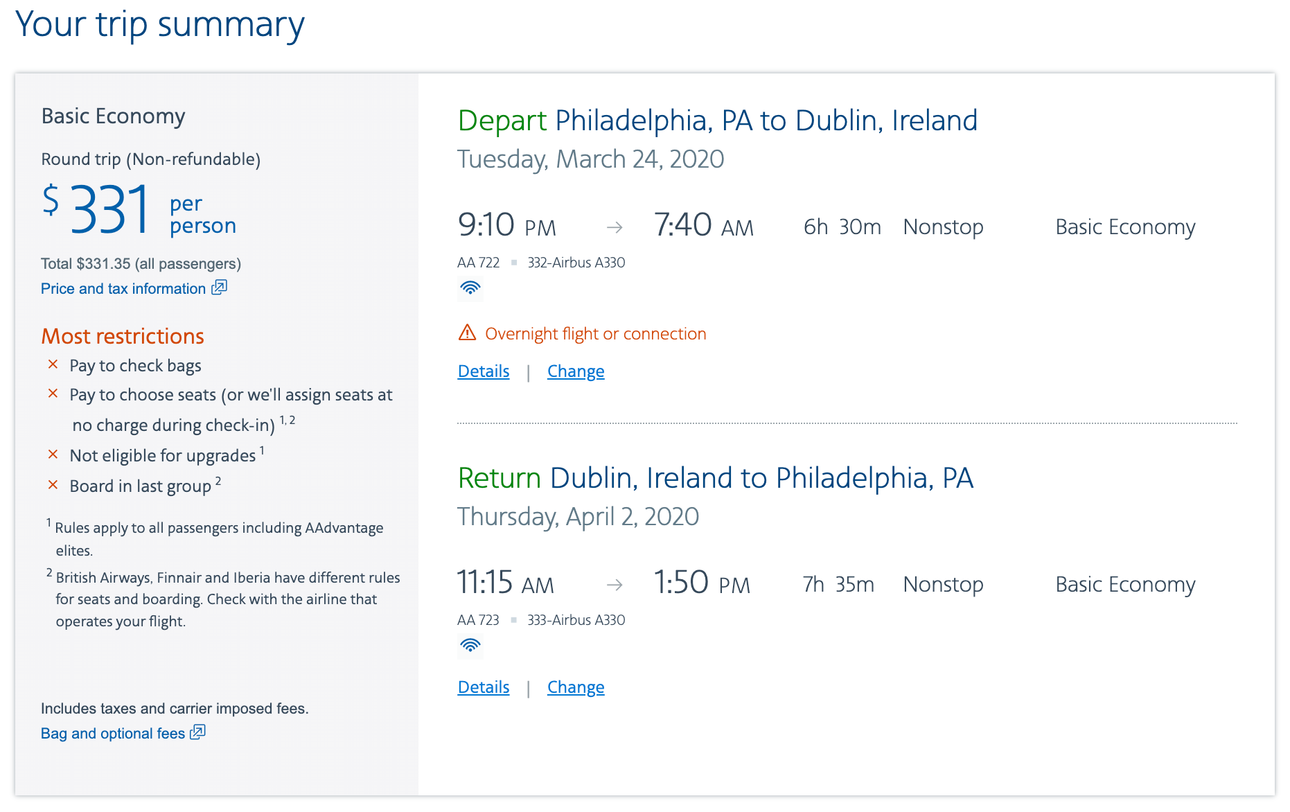 Some of these fares may book into basic economy, which means different things to different airlines, but often means you may not have free use of the overhead bins for a carry-on bag. You probably also won't be able to select your seat, get an upgrade or earn PQM/PQS/PQDs. However, it’s possible to defeat many of basic economy’s negative aspects by having elite status or a cobranded credit card.