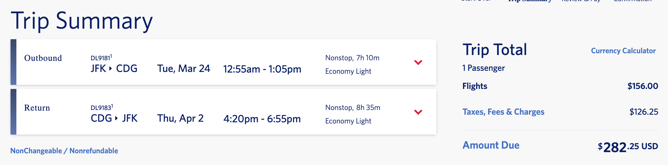 New York (JFK) to Paris (CDG) for $282 round trip on Delta/Air France/KLM: