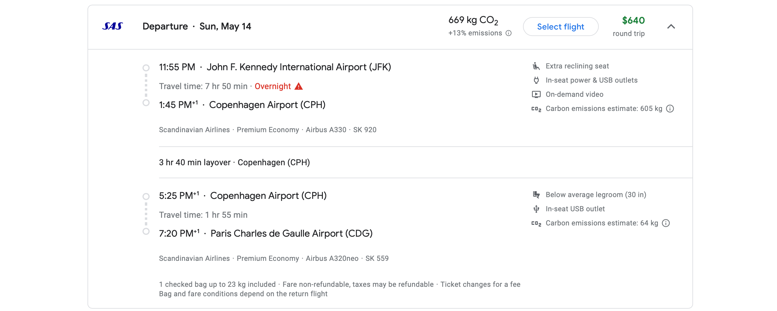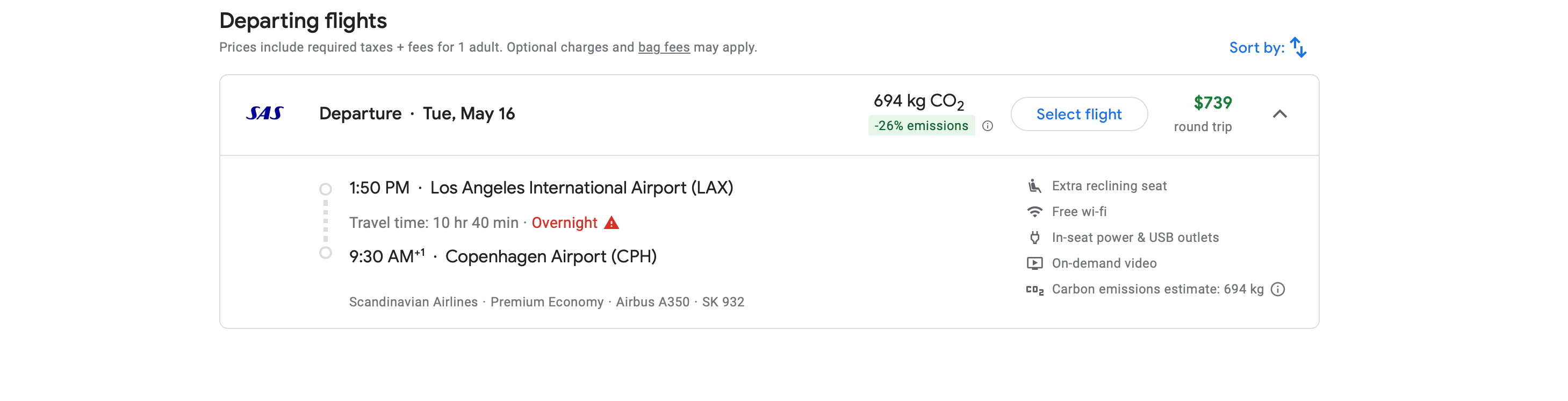 How to book: Search through Google Flights to find your best available dates and then book directly with SAS.