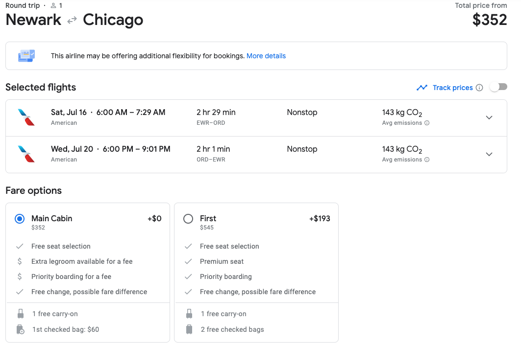 To search for this deal, head to Google Flights and enter your origin city and ORD as your destination. For example, this round-trip, nonstop EWR-ORD flight is just over $200. This flight is a good deal considering the normal price for this route is nearly $300.