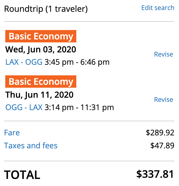 Los Angeles (LAX) to Maui (OGG) for $338 round-trip nonstop on United basic economy in June: