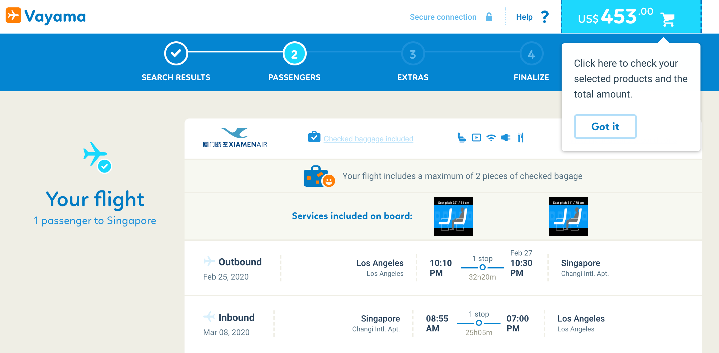 Los Angeles (LAX) to Singapore (SIN) for $453 round trip on Xiamen Air via Vayama: