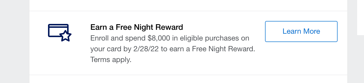 This is a nice promotion in exchange for simple credit card spending. Depending on the award price of the hotel at which you plan to use your free night certificate, you may effectively earn 10 or more points per dollar for your $8,000 in spending.