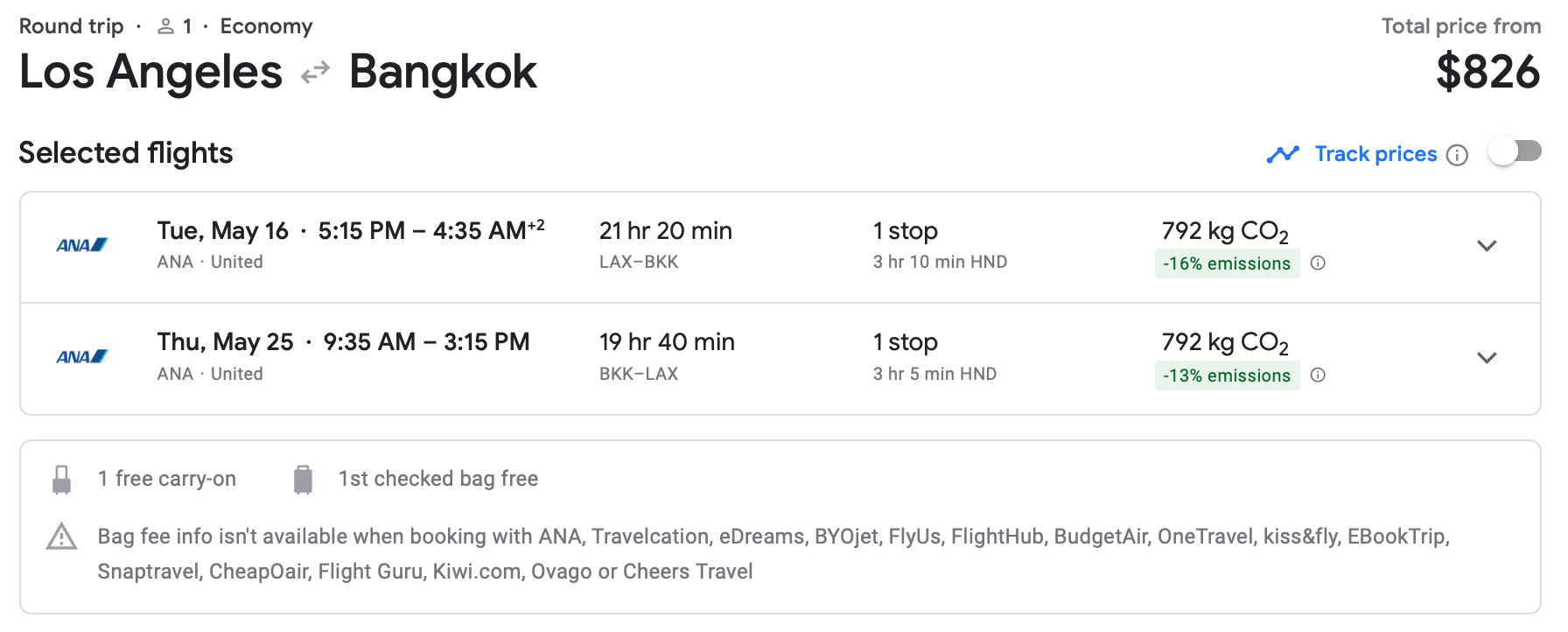 You can book an economy ticket from Los Angeles International Airport (LAX) to Bangkok for $826 round trip. We found good availability for this itinerary in the spring at this price.