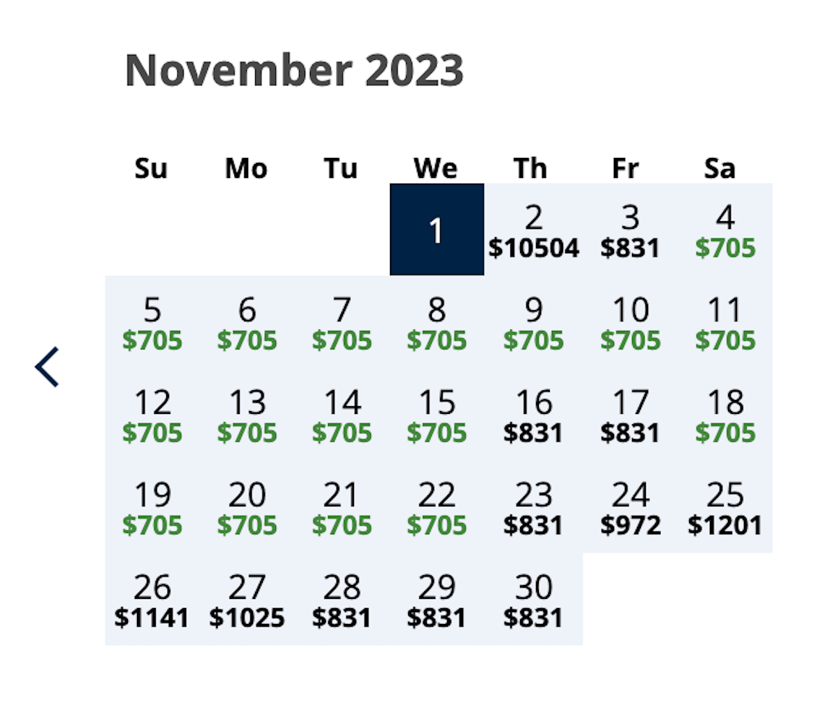 To find the cheapest possible dates, go to Google Flights and filter by airline or head straight to United's website. At the date of publishing, there was plenty of pre-Thanksgiving travel dates available in November.