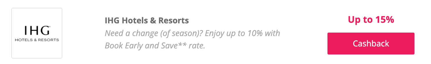 Individual properties under the IHG umbrella are also offering specific cash-back offerings, including 9% cash back at Voco, Crowne Plaza, Hotel Indigo, Holiday Inn, Even and InterContentinal properties.