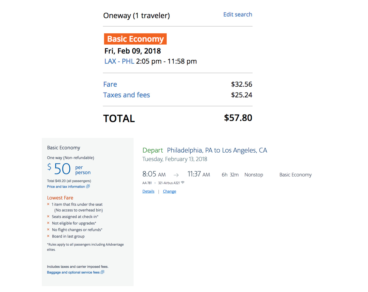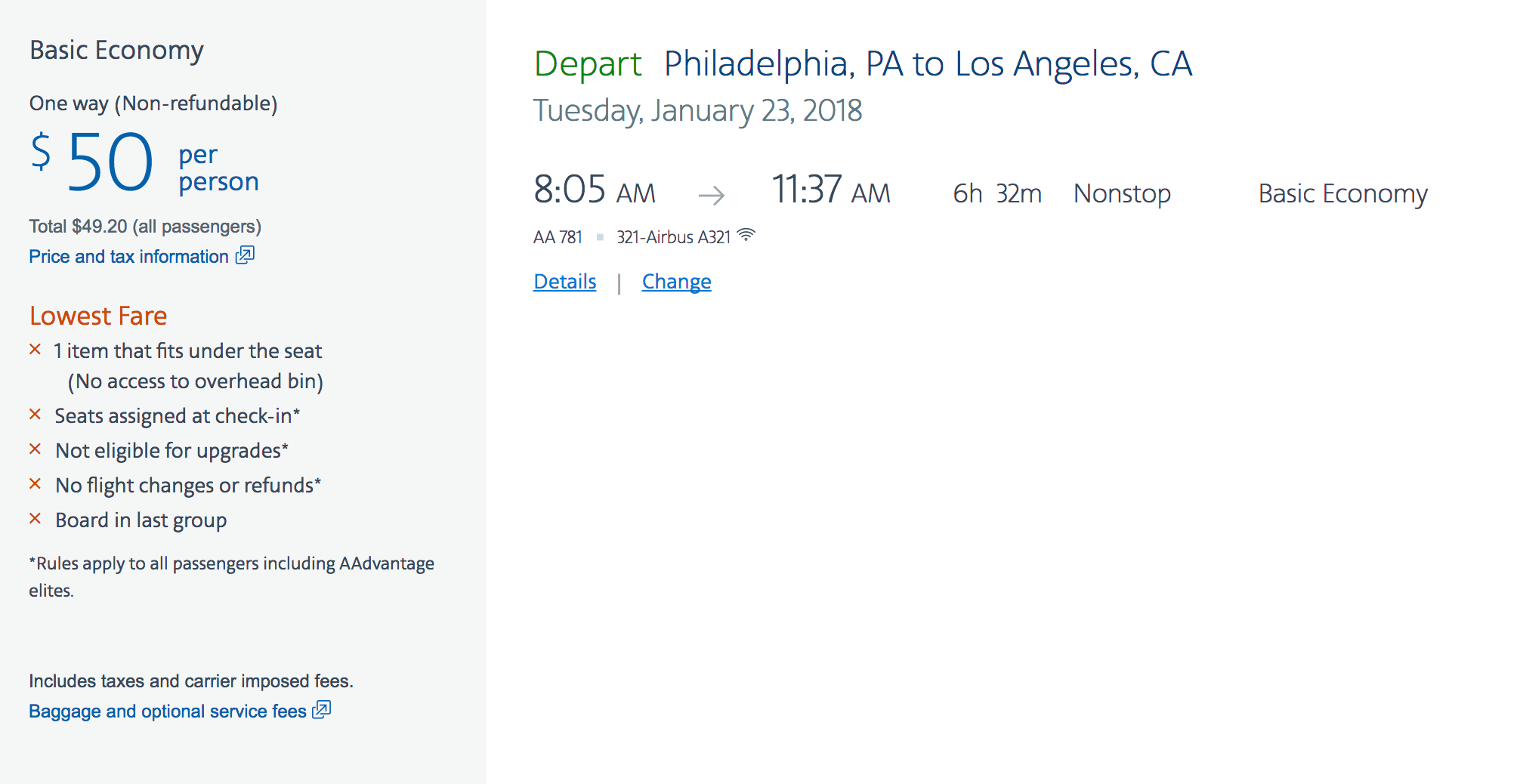 Cost: $50+ one-way/$108+ round-trip in basic economy
