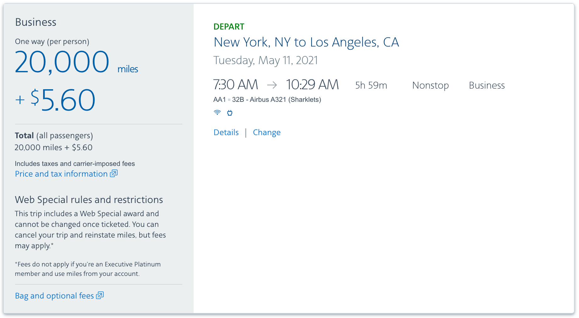 On Friday, TPG discovered that American's 5,000-mile economy Web Special awards are back. Today, we're seeing that business and first class Web Specials have returned as well, with some incredibly enticing deals for those traveling coast-to-coast.