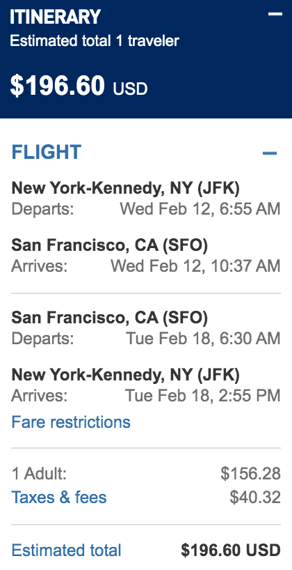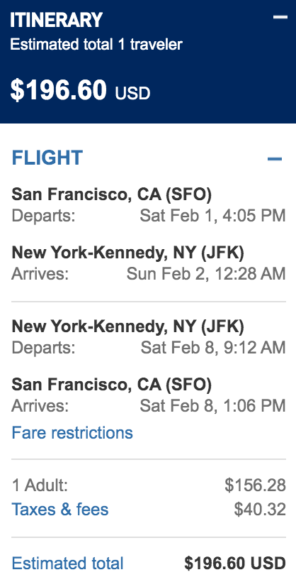 San Francisco (SFO) to New York (JFK) for $197 round-trip nonstop: