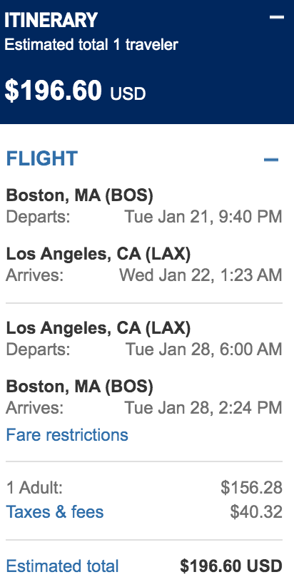 Boston (BOS) to Los Angeles (LAX) for $197 round-trip nonstop: