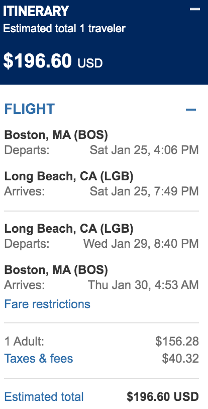 Boston (BOS) to Long Beach (LGB) for $197 round-trip nonstop:
