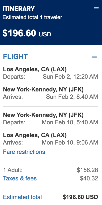 Los Angeles (LAX) to New York (JFK) for $197 round-trip nonstop: