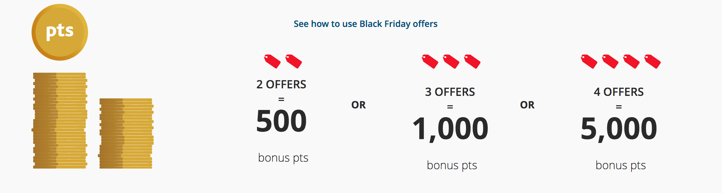 AirCanada's third promotion is the opportunity to earn up to 5,000 bonus Aeroplan points. Complete two offers, earn 500 bonus points; completing three offers will earn you 1,000 bonus points and going all in and completing four offers will earn you the full 5,000 bonus points.