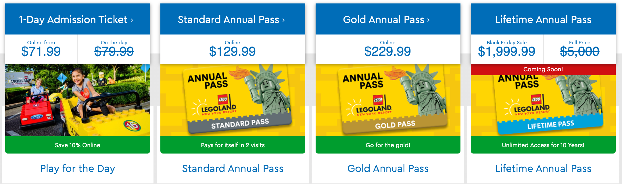 LEGOLAND New York had to postpone its summer 2020 grand opening due to COVID-19 but will be fully ready for opening day in 2021. To celebrate, it's offering a limited number of lifetime passes for sale. This will give you unlimited access (for 10 years) to the park, access to LEGOLAND parks in Florida and California, front of the line access to rides and attractions and more. Passes can be purchased between Nov. 26 and Dec. 1, 2020.