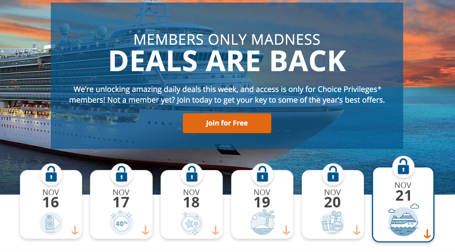 Last week, Choice launched its "Members Only Madness Deals" where a different promotion was launched every week. The only caveat — you must be a Choice Privileges member. Fingers crossed for more Black Friday or Cyber Monday promotions as well.