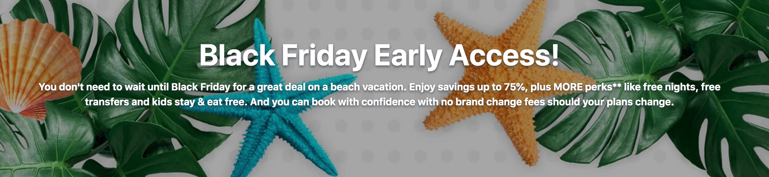- $100 off a $1,500+ package = Promo code FRIDAY100