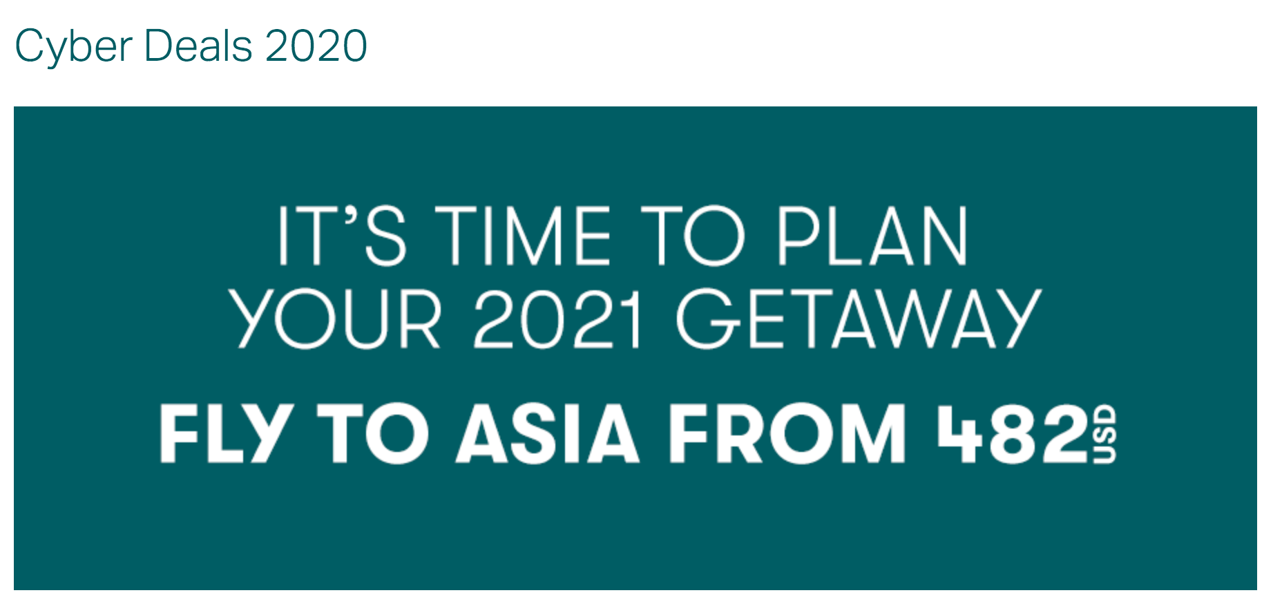 Cathay Pacific's Cyber Monday sale is here giving you the opportunity to save up to 50% off flights throughout Asia through Nov. 30, 2020.