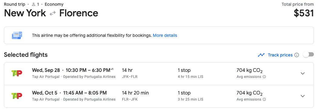 Because this deal includes flights to five Italian cities, it's easiest to comb through this deal by starting with Google Flights and entering your origin city and desired destination.