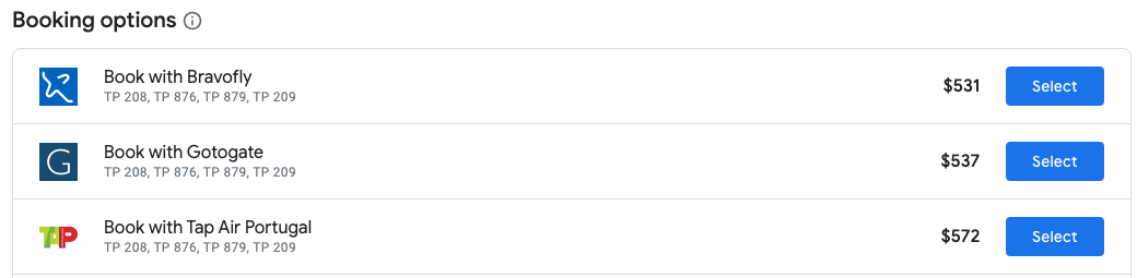 On Google Flights, you'll notice the option to book flights for a slightly lesser price via a third party, but we recommend booking through the airline directly for flexibility in dealing with potential flight changes or issues down the line.