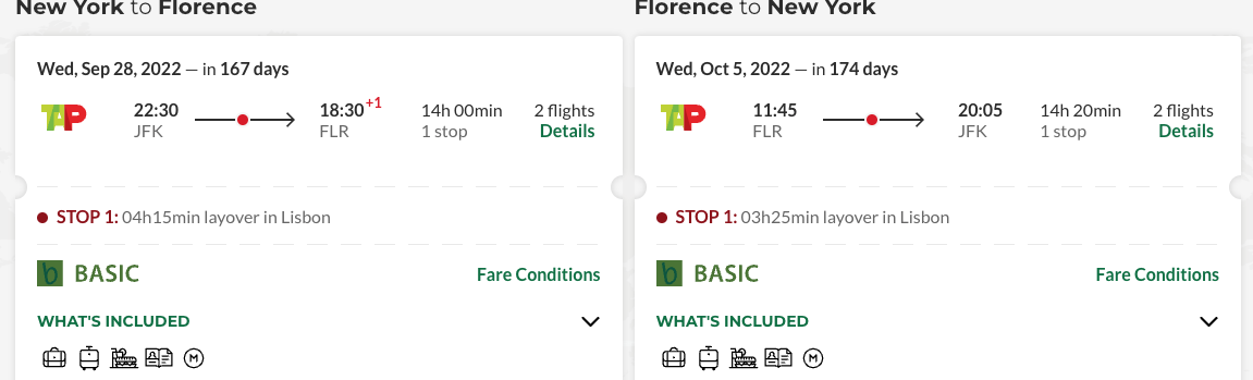 The advertised flights in this deal are for the most restrictive fare in TAP's economy class, which means tickets are nonrefundable but can be changed for a hefty $300. Additionally, this fare type does not include checked luggage, so consider paying $65 to upgrade to TAP's basic economy fare if you plan on checking a bag.