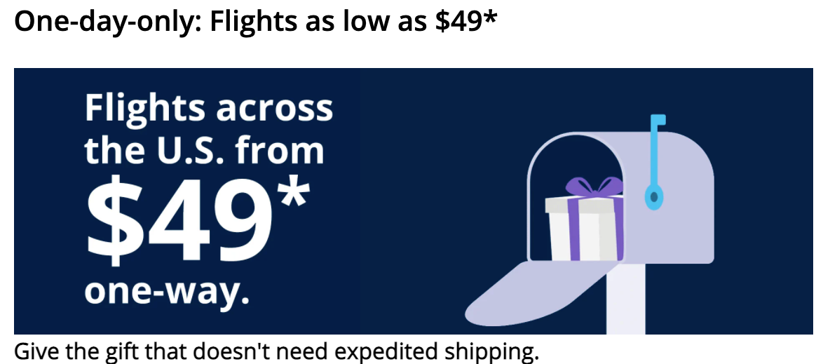 This sale is also for award travel, so United MileagePlus members could redeem 4,900 miles for any $49 fare, plus $5.60.