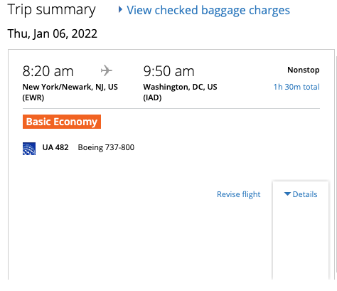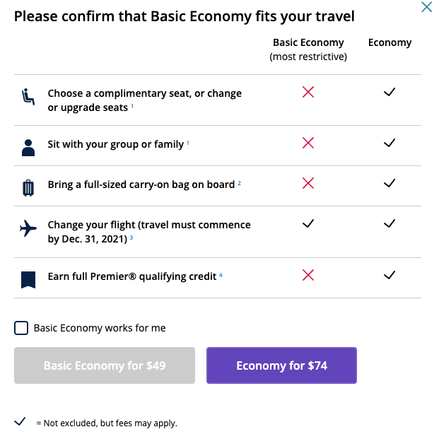 All included fares are in United's basic economy, which does not include seat selection or a full-size carry-on, so factor in an additional $25 to check a full-sized carry-on bag at the gate. You can pay $30 ahead of time to check a bag or $35 at the airport. Fares are nonrefundable except during the first 24 hours after purchase, and basic economy tickets can only be changed for travel commencing by Dec. 31, 2021.