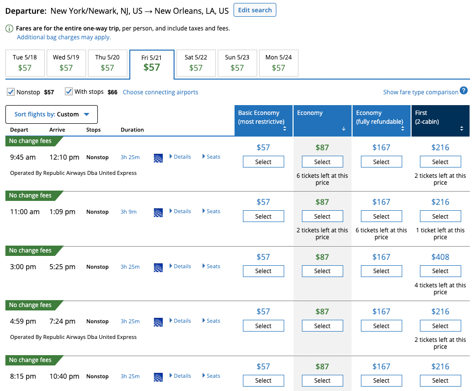In some cases, the buy-up to regular economy is entirely reasonable. Take this $46 flight from Newark (EWR) to Miami (MIA):