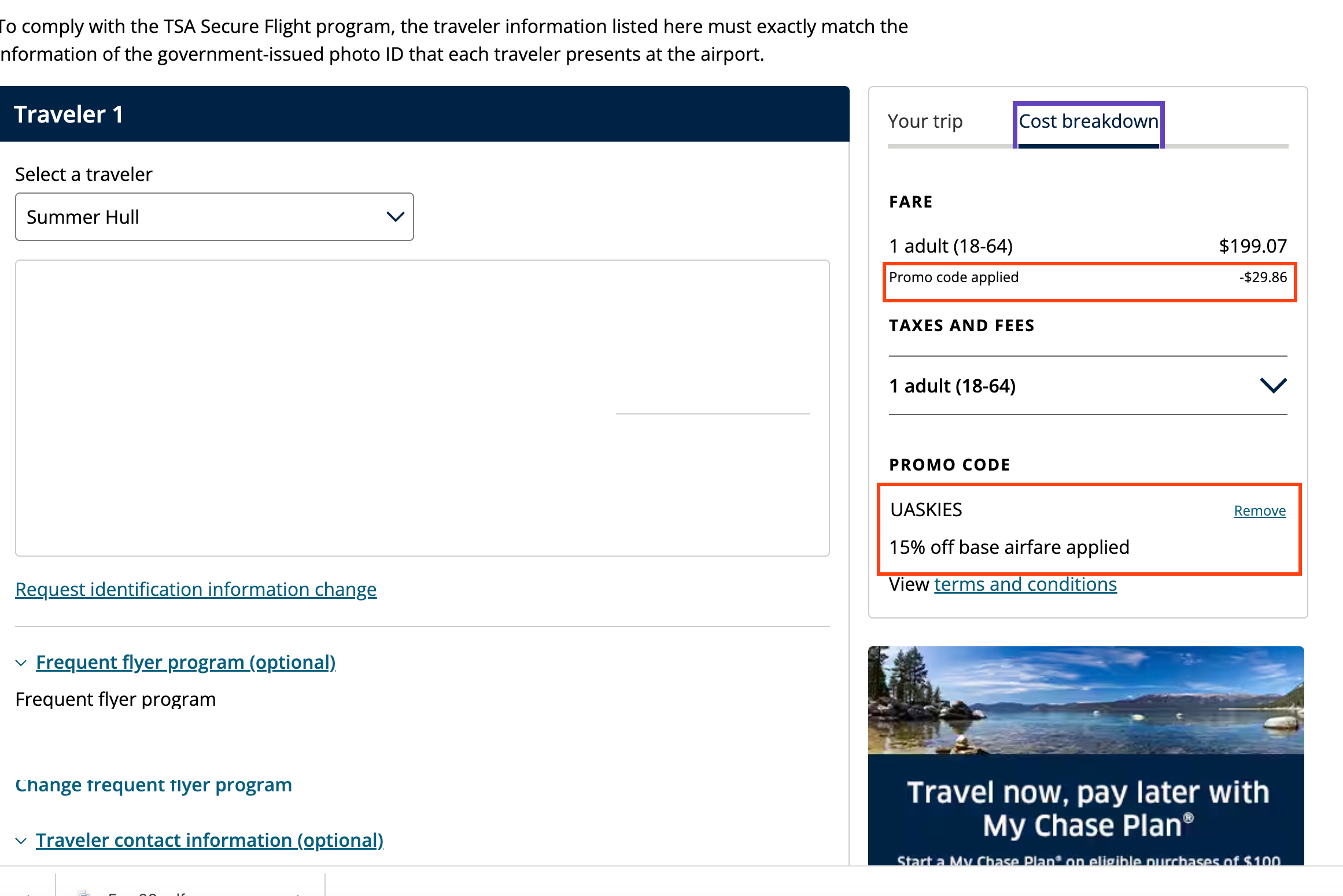 - Once you've selected your desired flight, click "Cost breakdown" to see your savings and ensure the code works.