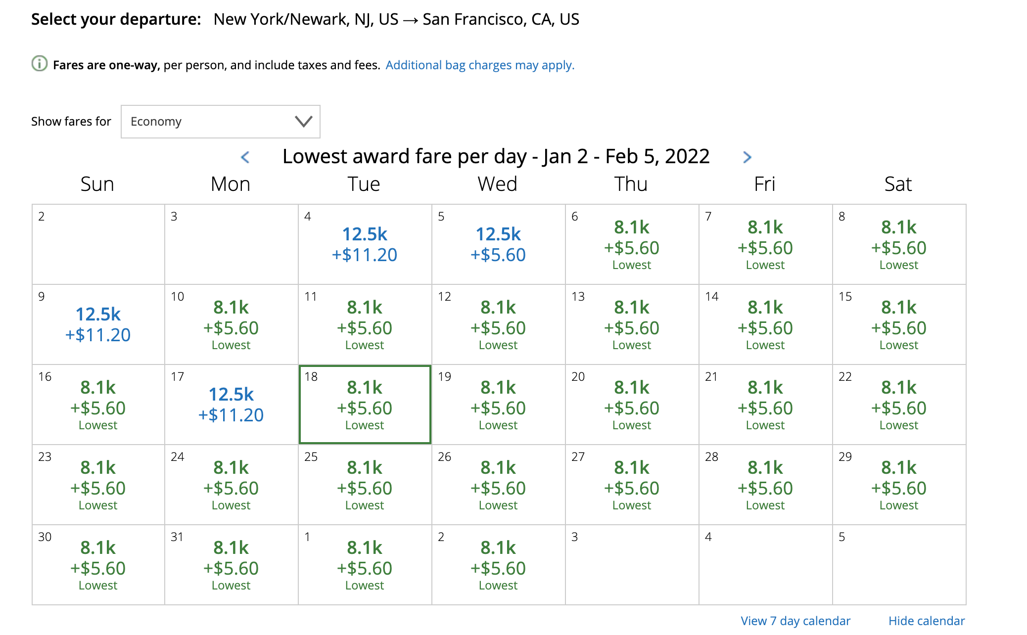 You'll go straight to the United website, plug in your desired cities and dates and search for availability. United has a handy seven- or 30-day calendar view if you have flexibility with your dates.