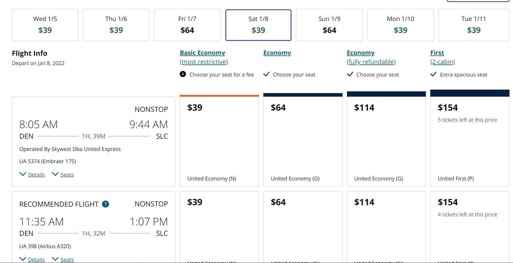 In the beginning of January 2022 there are options from Denver (DEN) to Salt Lake City (SLC) one-way for $39.