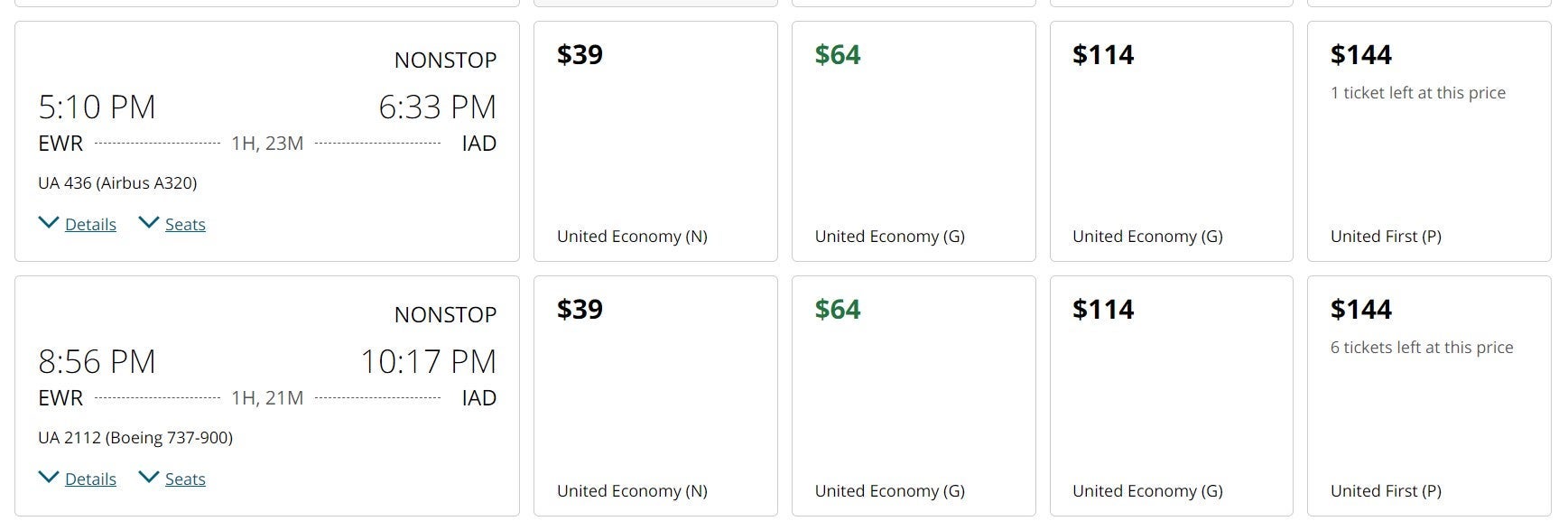 There are many routes from Newark's EWR, one being to Washington, D.C. (IAD) at $39 one-way.