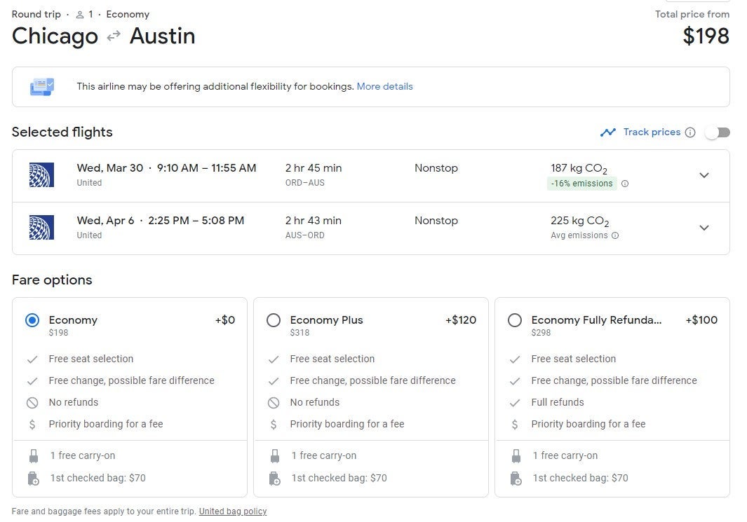 There are many options to go from Chicago (ORD) to Austin (AUS) for $198 round-trip. The flight below is from the end of March to the beginning of April, but the route at this price is available throughout both months.