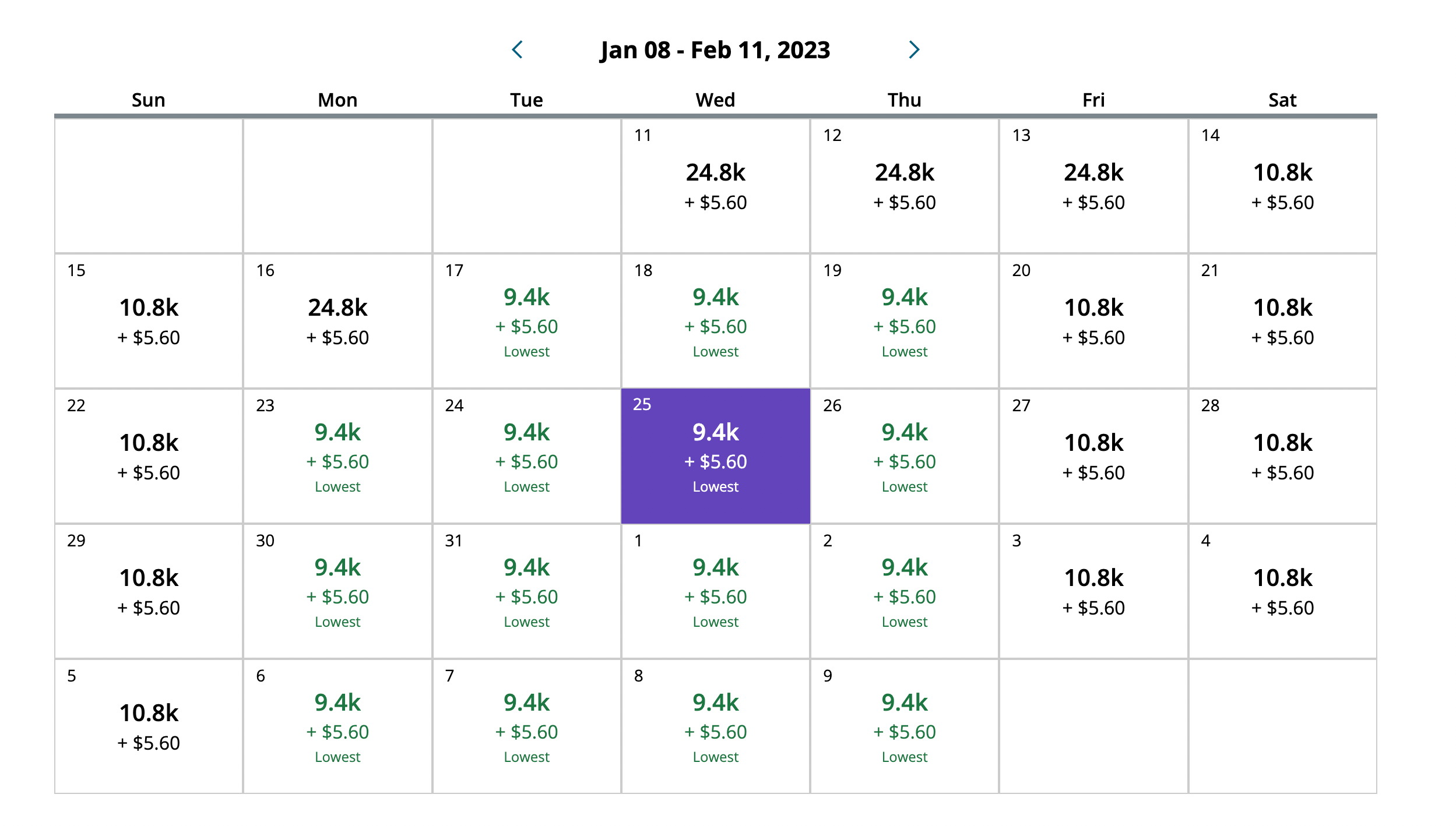 When booking a flight to Daniel K. Inouye International Airport (HNL) from Los Angeles International Airport (LAX), the deal may vary, since the number of seats for under 10,0000 offered is limited. However, we found that January to February 2023 had the most available dates for under 10,000 miles.