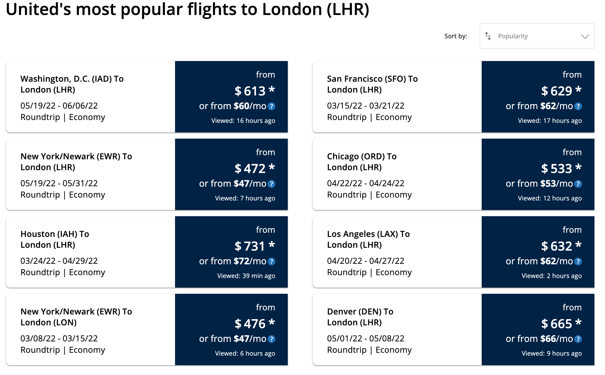 Routes: Any of the 22 nonstop routes between the U.S. and London (LHR)