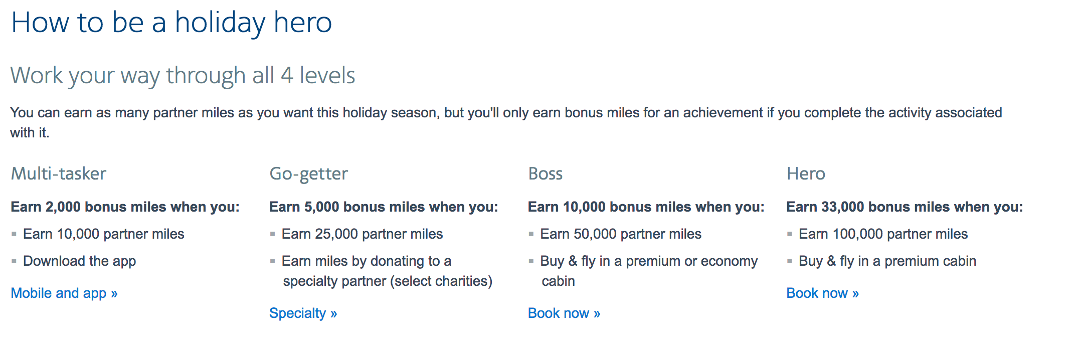 - Go-getter: Earn 5,000 bonus miles when you earn 25,000 miles with qualifying partner activity and earn at least 250 miles by donating to a participating charity.