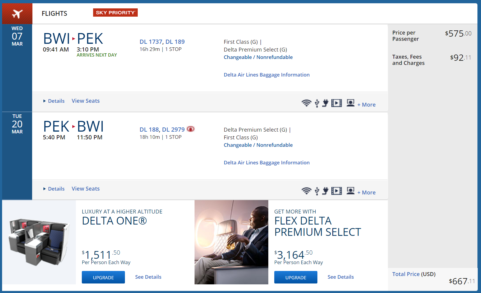 Baltimore (BWI) to Beijing (PEK) for $667 round-trip per person: