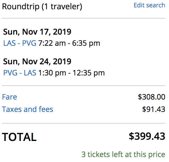 Las Vegas (LAS) to Shanghai (PVG) for $399 round-trip on United and ANA: