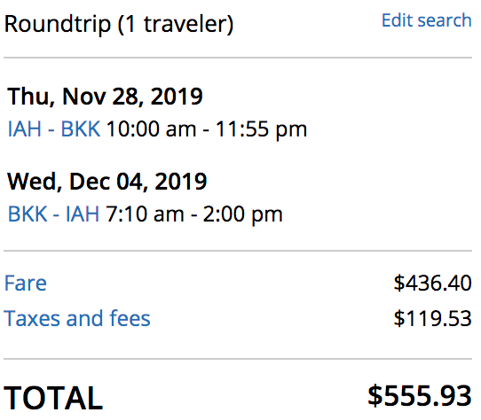 Houston (IAH) to Bangkok (BKK) for $556 round-trip on ANA and United:
