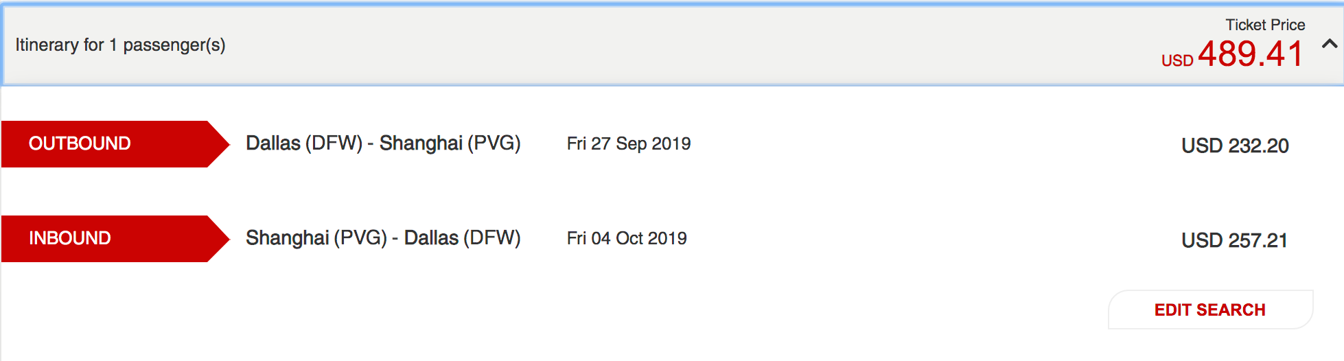 Dallas (DFW) to Shanghai (PVG) for $489 round-trip on Alaska and Hainan: